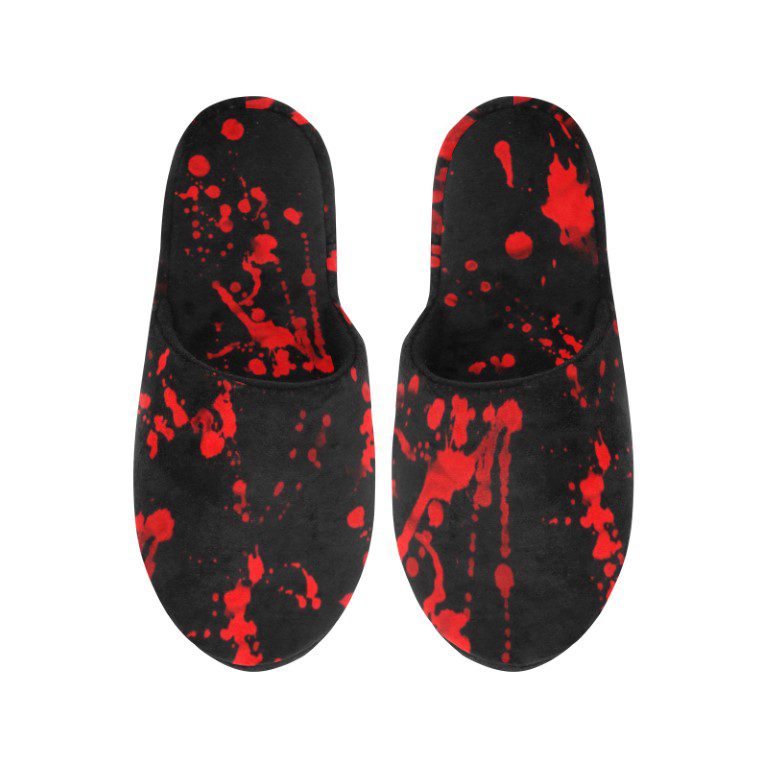 Features a horrifying blood spatter design